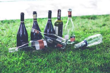 Keywords: empty bottle wine glass grass drinking alcohol