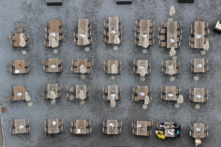 Keywords: empty tables gastronomy empty chairs street cafe seat garden restaurant empty