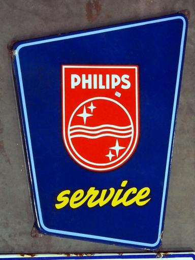 Keywords: Enamel advert, Philips service.JPG own 2012-11-24 12 48 11 Alf van Beem CC-zero Enamel advertising signs History of Philips Nostalgia by Alf van Beem Philips advertisements Philips logos Classic vehicle photographs by Alf van Beem