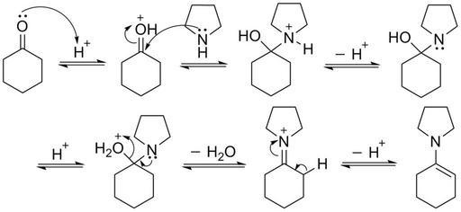 Keywords: EnamineSynthesisMechanism.png en Enamine synthesis mechanism Own Choij 2008-09-16 Reaction mechanisms Enamines