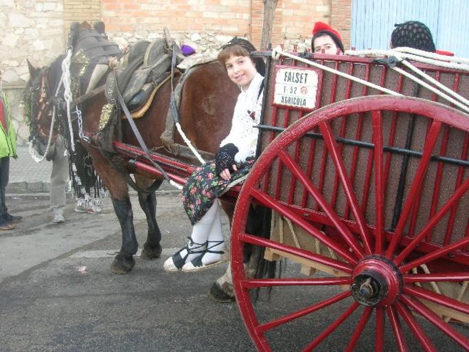 Keywords: Encamisada2007-1.jpg en Typical image of the Encamisada in Falset ca Una imatge de la festa amb els vestits típics i animals own Jvidiella 2007-01 Falset Folklore of Catalonia Horse-drawn carts in Catalonia