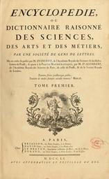 | Keywords: Encyclopedie de D'Alembert et Diderot - Premiere Page - ENC 1-NA5.jpg Cover of the Encyclopédie ou dictionnaire raisonné des sciences des arts et des métiers Encyclopaedia or a Systematic Dictionary of the Sciences Arts and Crafts Edited by Denis Diderot and Jean le Rond D'Alembert retouched version annoying minor dark spots removed; two greater luminous spots top + bottom right removed; little perspective transformation of the whole page; little retouching of surrounding borders; extra perspective transformation for the whole block below Tome Premier Titelseite der Encyclopédie ou Dictionnaire raisonné des sciences des arts et des métiers Herausgegeben von Denis Diderot und Jean le Rond D'Alembert Enzyklopädie oder erklärendes Wörterbuch der Wissenschaft der Kunst und des Handwerks <hr> Ursprüngliche WP-Dateien fr WP-Image ENC_1-NA5_600px jpeg - Première page de l'Encyclopédie de D'Alembert et Diderot grand format fr WP-Image Encyclopedie_cover_page jpg - Couverture de lEncyclopédie de Diderot et D'Alembert - L'ouvrage est sous-titré Dictionnaire raisonné des sciences des arts et des métiers - Il fut publié entre 1751 et 1772 Page de titre du Encyclopédie ou Dictionnaire raisonné des sciences des arts et des métiers Éditée sous la direction de Denis Diderot et Jean le Rond D Alembert Титульный лист издания «Энциклопедия или толковый слова ь наук искусств и емёсел» Энциклопедии Дид о и д'Аламбе а File ENC 1-NA5 600px jpeg http //ets lib uchicago edu/ARTFL/OLDENCYC/images Long List of Contributors to the Encyclopédie Lange Liste der Beiträger zur Enzyklopädie Liste longue des Collaborateurs de l'Encyclopédie Энциклопедисты Ф анция XVIII века Image finally edited by Jaybear circa 1751 72 publication date <gallery> Image ENC 1-NA5 600px jpeg Source Image </gallery> PD-old-100-1923 Encyclopédie ou Dictionnaire raisonné des sciences des arts et des métiers |