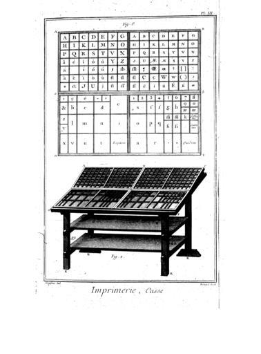 Keywords: Encyclopedie volume 6-024.png Encyclopedie Planches 6 023 025 PD-old-100-1923 Encyclopédie ou Dictionnaire raisonné des sciences des arts et des métiers volume 6 024 Latin alphabet Latin alphabet charts Type cases