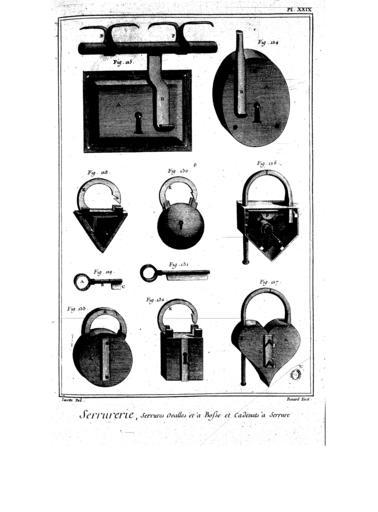 Keywords: Encyclopedie volume 8-080.png Encyclopedie Planches 8 079 081 PD-old-100-1923 Encyclopédie ou Dictionnaire raisonné des sciences des arts et des métiers volume 8 080 Locks