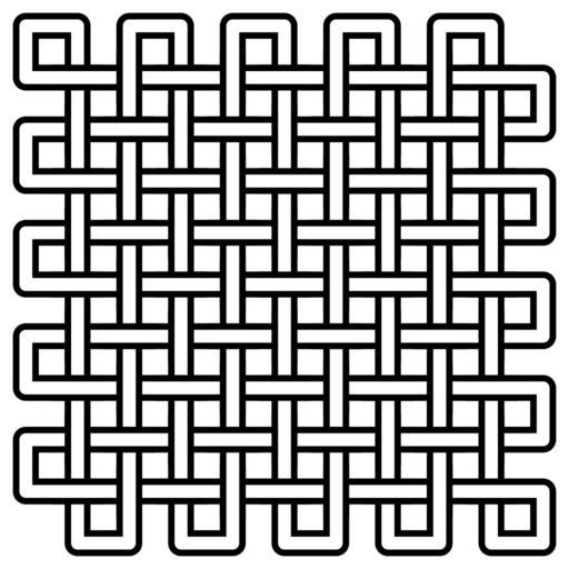 Keywords: Endless-knot-81-crossings.svg Version of the Endless knot symbol one degree more complex than that seen in image File Endless_knot Red_lacquerware_dish Ming_Dynasty jpg This knot has 81 crossings 79 of which are structurally significant Self-made image converted from the following vector PostScript source code <pre> 5 dup scale 1 setgray 18 setlinewidth/X 5 add 72 mul exch 5 add 72 mul exch def/l X lineto def 1 setlinejoin 0 9 X moveto 10 9 l 10 10 l 9 10 l 9 0 l 8 0 l 8 10 l 7 10 l 7 0 l 6 0 l 6 10 l 5 10 l 5 0 l 4 0 l 4 10 l 3 10 l 3 0 l 2 0 l 2 10 l 1 10 l 1 0 l 0 0 l 0 1 l 10 1 l 10 2 l 0 2 l 0 3 l 10 3 l 10 4 l 0 4 l 0 5 l 10 5 l 10 6 l 0 6 l 0 7 l 10 7 l 10 8 l 0 8 l 0 9 l closepath gsave 0 setgray 36 setlinewidth stroke grestore stroke/r 72 mul exch 72 mul exch rlineto def 36 setlinewidth 0 setgray 1 2 9 /z exch def 0 5 2 9 5 z X moveto 1 0 r stroke for for 2 2 8 /z exch def 1 5 2 7 5 z X moveto 1 0 r stroke for for 1 5 2 8 5 /z exch def 1 2 9 z X moveto 0 1 r stroke for for 0 5 2 9 5 /z exch def 2 2 8 z X moveto 0 1 r stroke for for 1 setgray 18 setlinewidth 1 2 9 /z exch def 0 48 2 9 48 z X moveto 1 04 0 r stroke for for 2 2 8 /z exch def 1 48 2 7 48 z X moveto 1 04 0 r stroke for for 1 48 2 8 48 /z exch def 1 2 9 z X moveto 0 1 04 r stroke for for 0 48 2 9 48 /z exch def 2 2 8 z X moveto 0 1 04 r stroke for for showpage EOF</pre> 2011 AnonMoos Endless knots Images with PostScript source code Knots and links on transparent background |