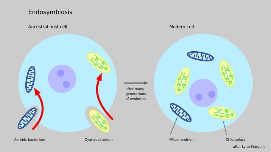 Keywords: Endosymbiosis.svg en Theory of Endosymbiosis and development of eukaryotic cells 2012-01-10 own Signbrowser validSVG cc-zero Evolution Cell diagrams