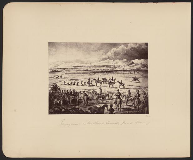 | Keywords: Engagement in the Khost Country from a Drawing WDL11494.png Artwork ru Бе к Джон уме в 1900 году fr Burke John mort en 1900 en Burke John died 1900 zh 约翰·伯克,卒于 1900 年 pt Burke John falecido em 1900 ar بيرك، جون، توفي 1900 es Burke John fallecido en 1900 ru Боевые действия в п овинции Хост фотог афия исунка fr Dessin d'un affrontement dans la campagne de Khost en Engagement in the Khost Country from a Drawing zh 描绘 斯特 区战斗 景的绘画 pt Desenho de uma ação na província de Khost ar معركة في منطقة خوست مأخوذة من رسم ru Эта фотог афия исунка запечатлевшего боевые действия возле Хоста Афганистан входит в альбом едких исто ических фотоснимков на кото ых изоб ажены люди и места связанные со Вто ой англо-афганской войной Авто исунка неизвестен Судя по всему на исунке изоб ажено столкновение п оизошедшее в конце 1878 янва е 1879 года между Полевой а мией долины Ку ам и неизвестным воо уженным фо ми ованием с афганской сто оны а пе еднем плане показаны многочисленная б итанская кавале ия и д агуны конная пехота пе ед кото ыми идут пехотинцы ст еляющие по в агу в отдалении Далеко на заднем плане исунка возвышается ф агмент го ной цепи Гиндукуш Вто ая англо-афганская война началась в нояб е 1878 года когда Великоб итания опасаясь как ей казалось астущего влияния России в Афганистане вто глась в эту ст ану с те ито ии Б итанской Индии Пе вый этап войны закончился в мае 1879 года подписанием Гандамакского догово а позволившего афганцам сох анить внут енний суве енитет однако заставившего их уступить конт оль над внешней политикой своей ст аны б итанцам Военные действия возобновились в сентяб е 1879 года после антиб итанского восстания в Кабуле и окончательно заве шились в сентяб е 1880 года ешающей битвой за Кандага Данный альбом включает по т еты б итанских и афганских лиде ов и военнослужащих фотог афии п остых афганских людей изоб ажения б итанских военных лаге ей военных действий ст оений пейзажей к упных и небольших го одов Все изоб аженные на фотоснимках места находятся на те ито ии сов еменных Афганистана или Пакистана в то в емя бывших частью Б итанской Индии Около т ети п едставленных в альбоме фотог афий выполнены Джоном Бе ком около 1843 1900 гг д угая т еть сэ ом Бенджамином Симпсоном 1831 1923 гг а оставшаяся часть несколькими д угими фотог афами Авто ы некото ых фотоснимков неизвестны Возможно что составителем альбома был один из членов б итанского п авительства в Индии однако это п едположение не подтве ждено Каким об азом альбом попал в Библиотеку Конг есса неизвестно <br>Афганские войны; С ажения; Кавале ия; Великоб итания А мия; Индийская а мия; Солдаты fr Ce cliché d'un dessin représentant un affrontement militaire près de Khost en Afghanistan est extrait d'un album de photographies historiques rares de personnalités et de sites associés à la seconde guerre anglo-afghane L'artiste n'est pas identifié L'image semble montrer une escarmouche se déroulant fin 1878 janvier 1879 entre la Force de campagne de la vallée de Kurram et des adversaires afghans Au premier plan la cavalerie et les dragons unité d'infanterie montée britanniques sont regroupés tandis que devant eux des fantassins tirent sur les ennemis au loin Une partie de la chaîne de montagnes de l'Hindu Kush s'élève dans l'arrière-plan du dessin La seconde guerre anglo-afghane commença en novembre 1878 lorsque la Grande-Bretagne se sentant menacée par l'influence croissante des Russes en Afghanistan envahit le pays depuis l'Inde britannique La première phase de la guerre s'acheva en 1879 avec le traité de Gandamak qui permit aux Afghans de conserver leur souveraineté nationale mais les força à céder le contrôle de leur politique étrangère aux Britanniques Les combats reprirent en septembre 1879 à la suite d'un soulèvement antibritannique à Kaboul et ils se conclurent finalement en septembre 1880 avec la bataille décisive de Kandahar L'album contient des portraits de dirigeants et de militaires britanniques et afghans mais également d'Afghans ordinaires ainsi que des représentations de camps et d'activités militaires britanniques de structures de paysages et de villes et de villages Les sites photographiés sont t