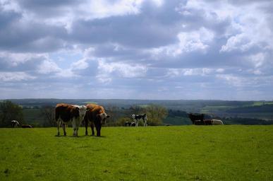 Keywords: england north yorkshire cow cows landscape grass season spring summer hills clouds sky