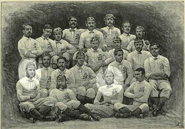 | Keywords: EnglandRugbyTeam1871RavenscourtPlayers.jpg en A picture of the first England Rugby side in 1871 with players from the Ravenscourt Park Football Club highlighted Football The Rugby Union Game Cassell Company Ltd edited by F Marshall in 1892 Not specified 1871 original photo PD-old-70-1923 1871 England national rugby union team 1871 in rugby union |