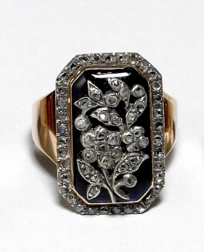 Keywords: English - Finger Ring - Walters 571785 - Top.jpg The octagonal bezel is set with a floral spray on foiled blue enamel ground set with diamonds between 1750 1800 gold enamel diamond silver beze cm 2 06 ; hoop cm 1 75 d accession number 57 1785 23152 Henry Walters Baltimore date and mode of acquisition unknown Laura F Delano New York date of acquisition unknown by gift Walters Art Museum Gift of Laura F Delano 1947 Jewelry - Ancient to Modern The Walters Art Gallery Baltimore 1979-1980 place of origin England United Kingdom Walters Art Museum license Jewellery in the Walters Art Museum Art of England Media contributed by the Walters Art Museum needs category review |