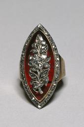 | Keywords: English - Ring with Floral Motif - Walters 571776 - Top.jpg In the late 18th century and into the 19th century marquise rings set with diamonds on dark blue or red enamel backgrounds became fashionable in Europe The oval marquise bezel like this ring and the rectangular shuttle-shaped bezel were the most popular shapes with diamonds set to imitate stars in the sky or floral sprays It was charactersitic to frame these rings with a border of diamond sparks set in silver mounts late Other date century 18 gold silver enamel diamond cm 3 33 1 75 accession number 57 1776 21927 Henry Walters Baltimore date and mode of acquisition unknown Laura F Delano New York date of acquisition unknown by gift Walters Art Museum Gift of Laura F Delano 1947 Jewelry - Ancient to Modern The Walters Art Gallery Baltimore 1979-1980 Bedazzled 5 000 Years of Jewelry from the Walters Art Museum Frist Center for the Visual Arts Nashville; The John and Mable Ringling Museum of Art Sarasota; The Walters Art Museum Baltimore 2006-2009 Bedazzled 5 000 Years of Jewelry El Paso Museum of Art El Paso 2010 place of origin England United Kingdom Walters Art Museum license Jewellery in the Walters Art Museum Art of England Media contributed by the Walters Art Museum needs category review Media contributed by the Walters Art Museum needs artist update |
