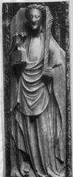 | Keywords: English - Saint John the Evangelist - Walters 27310.jpg Due to its plentiful supply beautiful translucent tone and soft texture that made it easy to carve alabaster was commonly used for English relief sculpture in the 14th and 15th centuries Many of the reliefs that survive today are panels from altarpieces of the Passion of Christ or the Life of the Virgin The altarpieces were not very expensive and were made for both local use and export to the continent by workshops in Nottingham near where the alabaster was quarried They were generally painted and traces of pigment are often visible today See also Walters 27 309 and 27 308 This figure of Saint John the Evangelist evinces the characteristics of this period in art known as International Gothic The elongation and grace of his hands feet and draping gown show elements of the this style which towards the end of the Middle Ages had spread through Europe and England He is characteristically beardless and holds in his right hand a book representing his writings on which rests his symbol an eagle In his left hand he holds the palm branch given to him by the Virgin Mary ca 1420 1450 late Medieval alabaster cm 43 3 14 4 7 3 ; framed cm 43 3 16 9 7 6 accession number 27 310 810 Victor Gay Paris by purchase Sale Hôtel Drouot Paris March 23 1909 no 355 George Robinson Harding London by purchase Henry Walters city Baltimore Walters Art Museum Henry Walters Acquired by Henry Walters 1909 place of origin Nottingham England United Kingdom Walters Art Museum license Medieval art in the Walters Art Museum Gothic art in the United Kingdom English medieval alabasters 15th-century reliefs |