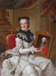 | Keywords: Enkedronning Juliane Marie.jpg Enkedronning Juliane Marie Portrait of w Juliana Maria of Brunswick-Wolfenbüttel with a portrait of her son Hereditary Prince Frederick 1766-1767 oil Institution Frederiksborgmuseet Own photographic reproduction of an expired work of art other versions DEFAULTSORT 1766-1767; Queen Juliana Johann Georg Ziesenis 18th-century portrait paintings in the Frederiksborg Museum Queen Juliane Marie of Denmark Frederick Hereditary Prince of Denmark and Norway 1760s dresses 1766 portrait paintings 1767 portrait paintings 18th-century oil portraits of sitting women at three-quarter length Badges of chivalric orders in portrait paintings Chairs in portrait paintings Columns in portrait paintings Drapery in portrait paintings Females with white dresses in art Lace caps in art Portrait paintings of Queens Portraits of females looking at viewer Portraits with image of family member Tables in portrait paintings Tassels in portrait paintings |