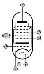 Keywords: Enneode-Symbol.svg Schaltsymbol einer Enneode einer Elektronenröhre mit siebern Gittern Circuit symbol of a nonode a thermionic valve with seven Grids Nonode Ennoda Ронод own 2010-08-31 own Vacuum tube symbols SVG vacuum tubes