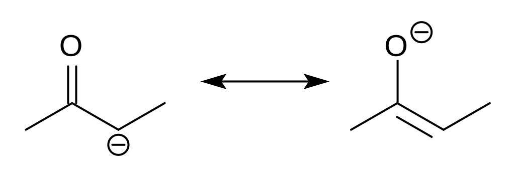 Keywords: Enolate Resonance.svg en Resonance stabilization of keto-enolate ion Drawn with BKChem processed with Inkscape Fabiuccio Functional groups Enolates Mesomerism