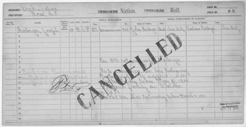 | Keywords: Enrollment for Cherokee Census Card D8 - NARA - 251756.jpg Scope and content Name Barbara Herberger Type Parent Sex Female Name John Herberger Type Parent Sex Male Name Joseph Herberger Type Doubtful Age 52 Sex Male Degree Indian Blood Intermarried White City of Residence Morse General notes 251756 Local identifier 75-53A-CHEROKEE D8 Department of the Interior Office of Indian Affairs Office of the Commissioner to the Five Civilized Tribes 1893 - 1914 NARA's Southwest Region Fort Worth NRFA 1400 John Burgess Drive Fort Worth TX 76140 Record group Record Group 75 Records of the Bureau of Indian Affairs 1793 - 1999 Record group ARC 404 Enrollment Cards compiled 1898 - 1914 Series ARC 251747 File unit File unit ARC Variant control numbers NAIL Control Number NRFF-75-53A-8687<br /> NAIL Control Number NRFF-75-53A-8688<br /> NAIL Control Number NRFF-75-53A-8689<br /> NAIL Control Number NRFF-75-53A-CHEROKEE D8 Other versions <gallery> File Enrollment_for_Cherokee_Census_Card_D8_-_NARA_-_251756 tif tif File Enrollment_for_Cherokee_Census_Card_D8_-_NARA_-_251756 jpg jpg </gallery> NARA-cooperation PD-USGov Cherokee census cards |