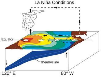 | Keywords: ENSO - La Niña.svg ENSO/La Niña state Warm water accumulates in far western Pacific Equatorial water is cooler than in the normal state ---- Derived from NOAA / PMEL / TAO diagrams http //www pmel noaa gov/tao/proj_over/diagrams/index html 2014-09-07 13 52 20 own Fred the Oyster <gallery> ENSO - normal svg Normal conditions ENSO_-_El_Niño svg El Niño conditions </gallery> v PD-USGov DEFAULTSORT Circulation normal La Niña Oceanographic diagrams Climatological diagrams SVG diagrams in English Sea surface temperature maps Uploaded with UploadWizard Images created by Fred the Oyster |
