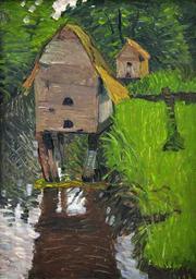 | Keywords: Entenhäuser von August Haake.jpg August Haake malte das Gemälde Entenhäuser in dem Zeitraum 1911-1914 in Fischerhude bei Bremen Deutschland Die Entenhäuser stehen in dem Fluss Wümme Rechts führt eine Brücke über einen Seitenarm der Wümme August Haake painted Duck houses over a period of 1911-1914 in Fischerhude near Bremen The duck houses are standing in the river Wümme On the right side goes a path and a footbridge over a branch by the Wümme Article en Allemand La peinture n'est ni datée ni siangée elle a été peinte entre 1911 et 1914 près de Brême Allemagne Ces cabanes sont dans la rivière Wümme Sur la droite un sentier et une passerelle qui franchit un bras de la rivière Deux trous de part et d'autre en haut de la toile étaient utilisés par l'artiste pour la transporter en l'accrochant sur son dos avec une ficelle lors de ses déplacements en mobylette Ils sont considérés comme une signature du peintre Entenhäuser other name Entenhäuser an der Wümme painted by August Haake over a period of 1911-1914 in Fischerhude near Bremen in Germany Oil painting on cardboard in the size 72x50 cm Property by the Kunstverein Fischerhude in Fischerhude near Bremen in Germany The painting is not dated and has no signing August Haake used to ride his motorcycle from Bremen to Fischerhude His painting was hanging on the way behind his back This is the simple reason that the painting has two holes on the top August Haake pulled a piece of string through both holes and made a knot Therefore both holes are regarded as the signing by August Haake Creator August Haake Photographer Michael Gäbler In the period of 1911-1914 The year is unknown PD-old-auto-1923 1915 Assessments 1 cleanup manually August Haake Duck houses Fischerhude in art Taken with Nikon D300 Wümme Featured pictures of painting Featured pictures of Lower Saxony |