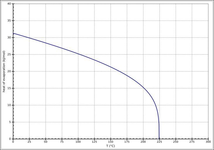 | Keywords: Enthalpy of evaporation 2-methylpentane.svg en Heat of evaporation of 2-methylpentane - temperature dependence de Verdampfungswärme von 3-Methylpentan - Temperaturfunktion own Steffen 962 2012-05-13 calculated according/berechnet nach Δ<sub>V</sub>H<sup>0</sup> A·exp ˆ’β·T<sub>r</sub> 1 ˆ’T<sub>r</sub> <sup>β</sup> Δ<sub>V</sub>H<sup>0</sup> in kJ/mol T<sub>r</sub> T/T<sub>c</sub> reduzierte Temperatur mit A 45 25 kJ/mol β 0 2739 und T<sub>c</sub> 497 5 K V Majer V Svoboda Enthalpies of Vaporization of Organic Compounds A Critical Review and Data Compilation Blackwell Scientific Publications Oxford 1985 300 Heat of evaporation Cc-zero |