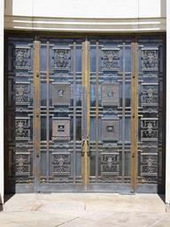 | Keywords: Entrance doorway to the Hall of State at Fair Park, site of the 1936 Texas Centennial celebration and the Pan-American Exposition in 1937 in Dallas, Texas LCCN2015630335.tif 1 photograph digital tiff file color Notes The park preserves the largest collection of 1930s Art Deco architecture in the United States It also holds the distinction of being the only unaltered pre-1950s world's fair site in the nation ; Gift; The Lyda Hill Foundation; 2014; DLC/PP-2014 054 ; Title date and keywords based on information provided by the photographer ; Forms part of Lyda Hill Texas Collection of Photographs in Carol M Highsmith's America Project in the Carol M Highsmith Archive ; Credit line The Lyda Hill Texas Collection of Photographs in Carol M Highsmith's America Project Library of Congress Prints and Photographs Division 2014 Creator Carol M Highsmith Library of Congress Catalog http //lccn loc gov/2015630335 Image download https //cdn loc gov/master/pnp/highsm/30000/30099a tif Original url http //hdl loc gov/loc pnp/highsm 30099 No known restrictions on publication LOC-image highsm 30099 PD-Highsmith Images uploaded by Fæ Lyda Hill Texas Collection of Photographs in Carol M Highsmith's America Project in the Carol M Highsmith Archive The Lyda Hill Texas Collection of Photographs in Carol M Highsmith's America Project Library of Congress Prints and Photographs Division Photographs by Carol M Highsmith Hall of State Fair Park Dallas |