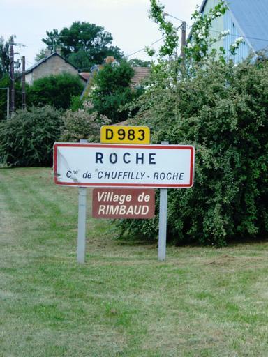 Keywords: Entrée Roche, Village de Rimbaud.jpg fr Entrée Roche Village de Rimbaud 2009-06-03 own Havang nl cc-zero Uploaded with UploadWizard Arthur Rimbaud City limit signs in Ardennes department Roche EB10 road sign France M10a road sign France E43 road sign France H11 road sign France Hameau de Roche à Chuffilly-Roche |