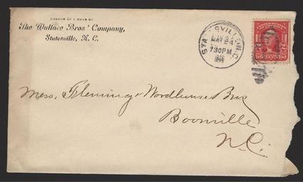 | Keywords: Envelope - Boonville Address-000.jpg Image Envelope - Wood Food Company pdf first DCT picture Keywords 1906 North Carolina Boonville Statesville The Wallace Bros' Company Envelope Cancelled Stamp Postmark Stamp Regular Issue Series of 1902-1903 1903 Perforated 12 Stamp Scott 319 Washington Father of our Country 2 cents carmine PD-old 1906 Postal covers of the United States 1903 stamps Stamps of the United States 1901-1910 1903 Stamps on covers and postcards | ||||