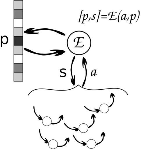 | Keywords: EnvironmentStructure.svg of an evironment as an agent using internal states and input/output es Descripcion del ambiente en forma de agente utilizando estados internos y entrada/salida own Juan Pablo Carbajal 12-12-08 created with Inkscape Automata theory Computer simulation Created with Inkscape SVG |