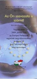 | Keywords: EP election 2009 in Hungary, Voter invitation card, frontpage.jpg European Parliament election of 2009 Frontpage This card has been delievered alongside with a proposal coupon in Hungarian kopogtatócédula or ajánlószelvény and a voter registration card for registered voters via letter Translation Five years ago 3 097 657 voters decided about Hungary's EP delegation Your vote counts too Now here is your chance Participate in the upcoming EP election on 7th June 2009 and decide about who will represent Hungary - prospectus by the National Election Office Color 300 dpi Hardware Epson Perfection v10 hu Az Országos Választási Iroda szóróanyaga a 2009 évi európai parlamenti választásokhoz CÃmlap A választási névjegyzékre felvettek kapták kézhez az ajánlószelvénnyel és a névjegyzéki értesÃtÅ‘vel együtt Eredeti szöveg žÃ–t évvel ezelÅ‘tt 3 097 657 választópolgár döntött Magyarország európai parlamenti képviseletérÅ‘l Az Ön szavazata is számÃt Most újra itt a lehetÅ‘ség Vegyen részt 2009 június 7-én az európai Parlament tagjainak megválasztásában és döntse el hogy kik képviseljék Magyarországot - Az Országos Választási Iroda közszolgálati tájékoztatója SzÃnes 300 dpi Szkenner Epson Perfection v10 en Scanned by the uploader hu Saját szkennelés Hungary hu A szerzÅ‘ ismeretlen Közreadó http //www valasztas hu/ Az Országos Választási Iroda Publication 2009 PD-HU-exempt none / nincs Voter invitation cards European Parliament election 2009 Hungary 2009 in Hungary |