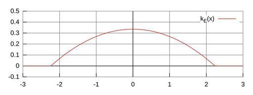 | Keywords: Epanechnikov-Kernel.svg en Plot of the Epanechnikov kernel 3/ 4 sqrt 5 1-x 2/5 2011-06-04 own Accountalive Created with Gnuplot set output 'E \Projekte\wikipedia\Epanechnikov-Kern\epanechnikov svg' set terminal svg set termoption enhanced fname DejaVu Sans set xrange -3 3 set yrange -0 1 5 set grid set xzeroaxis lt -1 set yzeroaxis lt -1 set noborder set xtics nomirror set ytics nomirror set size ratio 3 set xtics 0 5 set ytics 0 1 set samples 80 k x x> -sqrt 5 x<sqrt 5 3/ 4 sqrt 5 1-x 2/5 0 set title 'Epanechnikov-Kern k_ E x 3/ 4 sqrt 5 1-x 2/5 ' plot k x title k_ E x cc-zero Uploaded with UploadWizard Stochastic processes Statistics |