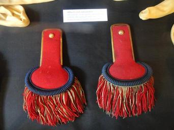 | Keywords: Epaulets - Framingham History Center - DSC00451.JPG Officer's epaulets Exhibit in the Framingham History Center Edgell Memorial Library 3 Oak Street Framingham Massachusetts USA Photography was permitted in the museum without restriction I took this photograph 2011-07-09 14 33 06 Daderot Public domain Framingham History Center Fringed epaulettes |
