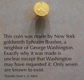 | Keywords: Ephraim Brasher coin - National Museum of American History - DSC00237.jpg en Exhibit in the National Museum of American History Washington DC USA Photography was permitted in the museum without restriction 2015-03-27 11 33 55 own Daderot other versions cc-zero Coins in the National Museum of American History Ephraim Brasher Coins of the United States | ||||
