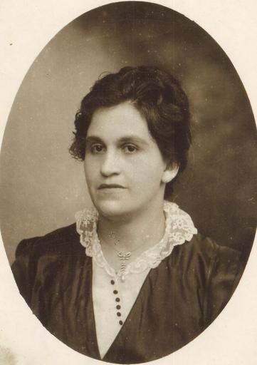 Keywords: Eponina Magalhães Navarro.jpg pt Pessoa trajando casco preto com blusa branca Foto de meu acervo pessoal Author 1908 PD-OLD A foto da foto foi feita por mim PD-old Black and white photographic portraits of women 1908 People of Brazil