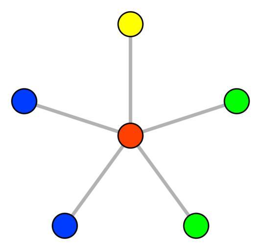 Keywords: Equitable-K15.svg equitable coloring of K<sub>1 5</sub> Own David Eppstein 2009-03-03 Star graph S5 Files by User David Eppstein from en wikipedia Graph coloring; vertex