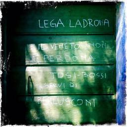 | Keywords: italy italia street wall verona politics lega tosi berlusconi elezioni scritte message green door torricelle veronetta text "Veneto does not forgive. Tosi - Bossi are Berluscony's slaves". Flavio Tosi is Verona's major, to be reelected (or rather not) in a couple of weeks. "Veneto does not forgive. Tosi - Bossi are Berluscony's slaves". Flavio Tosi is Verona's major, to be reelected (or rather not) in a couple of weeks. | ||||