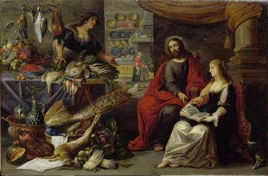 | Keywords: Erasmus Quellinus II, Adriaen van Utrecht - Jesus in the house of Martha and Mary.jpg artwork Creator Erasmus Quellinus II and Jesus in the house of Martha and Mary 17th century Oil panel size cm 58 5 88 5 object history http //www photo rmn fr/archive/11-558760-2C6NU0WML36J html Institution Staatliches Museum Schwerin PD-old-100 Religious paintings by Erasmus Quellinus II Still life paintings by Adriaen van Utrecht Kitchen scenes by Adriaen van Utrecht 17th-century paintings of Jesus in the house of Martha and Mary Flemish paintings in the Staatliches Museum Schwerin 17th-century oil on canvas paintings |