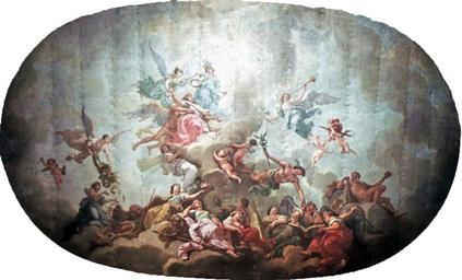 | Keywords: Erhebung des Großen Kurfürsten in den Olymp (van Loo).jpg The Elevation of the Great Elector into Olympus Oil on canvas destroyed in World War II Ceiling painting City Palace Potsdam Die Erhebung des Großen Kurfürsten in den Olymp Öl auf Leinwand Kriegsverlust Deckengemälde Stadtschloss Potsdam 20366819 LAC 9 003/18 fmlac9003_18 <br /> Foto Peter Cürlis; color ; Aufnahme-Datum um 1944 04/1944 08; Zugang Dauerleihgabe Kunsthistorisches Institut der Universität Mainz artwork Creator Charles-Amédée-Philippe van Loo file James Steakley 1751 Die Erhebung des Großen Kurfürsten in den Olymp van Loo PD-old-100-1923 The Elevation of the Great Elector into Olympus van Loo |