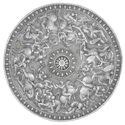 | Keywords: Erik XIVs paradsköld gjord i stål 1562. Dekorerad med krigande Amazoner - Livrustkammaren - 96162.tif Arboga faktori sv Rund sköld med bukig framsida Dekorerad i hög relief fylld med figurscener Pigg i mitten 13 cm lång Insidan klädd i röd sammet Två sammetshandtag sydda av tre cm breda band svarta metallspännen nya 36 nitar med sexkantiga brickor håller fodret på plats runt hela kanten Den inre ringen nitar har åtta dylika <br/>Rustningen som består av 18 delar enligt nuvarande numrering levererades till Erik XIV 1562 Materialet är stål med etsad och driven dekor samt pålagt guld Tillverkad vid Arbogas vapenfaktori och dekorerad i Antverpen av guldsmeden Eliseus Lieberts efter förlagor från den franske konstnären Etienne Delaune Hela garnityret är dekorerat med mytologiska gestalter fjättrade fångar stridsscener och trofégrupper samt Vasavapnet tre Kronors-vapnet och Folkungalejonet <br/>Rustningen kan tex ha använts vid något av de många festtåg som kungen arrangerade både av krigisk och fredlig art Ett av dessa ägde rum efter fälttåget mot Danmark 1564 då Erik red in i Stockholm i stor triumf Han medförde både troféer och krigsfångar som utgjorde en levande illustration till rustningsgarnityrets dekor <br/>Häststjärnan levererades ett år senare 1563 och har en annan dekor den sändes som ett varuprov på dekor och Erik beställde ytterligare minst en rustning från Antwerpen original caption Erik XIV s paradsköld gjord i stål 1562 Dekorerad med krigande Amazoner <br/> Nyckelord Sköldar 1500-tal Sköld Runda Föremålsbild Hästar 1562 steel g 4143 size mm 580 LRK Erik XIV av Sverige Sweden - A Royal Treasury 1988-1989 Tre Konungar på Åbo slott 1993 Örnen och de tre kronorna 2003 Parures Triomphales 2003 Sous l'égide de Mars Armures des Princes d'Europe' tid arbetstitel Armures et décors maniéristes francais 2011 Musée de l'Armée Maktspel - ett kostymdrama i Livrustkammaren 2014-2015 Livrustkammaren place of origin Antwerpen Arboga original filename lm_dig10002 62757 inventory number LRK 26089 96162 CC-BY-SA Erik Lernestål <gallery caption Different images of same object > File Rustning tillhörande Erik XIV - Livrustkammaren - 22454 tif File Rustning - Livrustkammaren - 5330 tif File Krig med amazonerna på Erik XIVs sköld från 1562 - Livrustkammaren - 4600 tif File Rustning - Livrustkammaren - 82376 tif File Detalj hjälm - Livrustkammaren - 4696 tif File Sadel till Erik XIV paradrustning från 1562 - Livrustkammaren - 13891 tif File Erik XIVs rustning från 1562 - Livrustkammaren - 73817 tif File Pressbilder till utställningen Maktspel - Livrustkammaren - 96582 tif File Erik XIV rustning och sköld från 1562 i manieristisk stil - Livrustkammaren - 31016 tif </gallery> Horses Round pictures Eliseus Libaerts Étienne Delaune Round shields Erik Lernestål Media contributed by LSH unmatched creator Shield images from Livrustkammaren Media contributed by LSH 2014-11 |