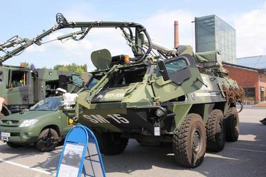 | Keywords: Erikoissammutusyksikkö SM 15 2.JPG en Erikoissammutusyksikkö SM 15 special fire engine used by Finnish military Specially designed for combating fires in ammunition dumps or other explosive areas built on Pasi armoured personnel carrier Equipped with 8 5 meter long grip arm capacity 100 kg with a camera 12x zoom both day/night use halogen light and Rosenbauer RM8E water cannon Self-protection water cannon Rosenbauer RM8E 1000 l/min/10 bar with a range of 42 meters and 270 degree traverse Impulse Fire Extinguishing System IFEX with 2 x 12 l/25 bar range 60 meters initial velocity 120 m/s Inside the vehicle is a hydraulic water pump Esteri D-16/19 1600 l/min/10 bar 1500 l water tank remote operating system and the controls for pump water cannons and the grip arm Attached to Finnish Navy Archipelago Sea Naval Command military fire department fi Suomen puolustusvoimien käytössä oleva erikoissammutusyksikkö SM 15 Pasi-miehistönkuljetusajoneuvon rakenteelle tehty erityisesti ammusvarikkojen ja muiden räjähtävien kohteiden sammutukseen suunniteltu sammutusajoneuvo Autossa on 8 5 metrin pituinen nostokouralla 100 kg kameralla 12x zoom sekä yö- että päiväkäyttö halogeenivalolla ja Rosenbauer RM8E vesitykillä varustettu käsivarsi Omasuoja-vesitykkinä on Rosenbauer RM8E 1000 l/min/10 bar kantama 42 metriä kääntösäde 270 astetta IFEX-mikroimpulssisammutin 2 x 12 l/25 bar kantama 60 metriä lähtönopeus 120 m/s Vaunun sisällä on hydraulinen palopumppu Esteri D-16/19 1600 l/min/10 bar 1500 litran vesisäiliö kaukokäyttöyksikkö sekä palopumpun vesitykkien käsivarren ja nostokouran ohjaus Vaunu kuuluu Saaristomeren meripuolustusalueen sotilaspalokuntaan own MKFI 2011-07-09 Finnish Navy anniversary 2011 Erikoissammutusyksikkö SISU/Patria XA-series in Finnish service Taken with Canon EOS 60D Taken with Canon EF-S 15-85mm F3 5-5 6 IS USM Files by User MKFI |