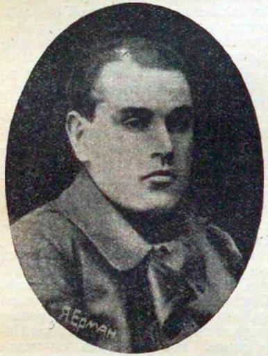 | Keywords: Erman YZ.jpg ru Е ман Яков Зельманович before 1918 Памятник бо цам п олета ской еволюции погибшим в 1917 1921 гг ; сост Л Лежава и Г Русаков 3-е изд исп и доп осква; Госуда ственное издательство 1925 URL http //dlib rsl ru/viewer/01007551917 page 226 author other versions Custom license marker 2015 08 01 PD-old-70 Uploaded with UploadWizard Bolsheviks |