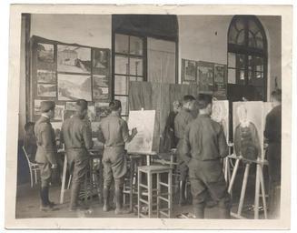 | Keywords: smithsonian institution smithsonianinstitution art class artclass portrait class portraitclass painter artists uniforms black and white photo blackandwhitephoto archives of american art archivesofamericanart black and white Description: Group photo of the "Portrait Class", men dressed in uniform working at easels. Peixotto is at far left. Identification on verso (handwritten): The Portrait Class; Ernest Peixotto. Peixotto, Ernest, 1869-1940 Creator/Photographer: Unidentified photographer Medium: Black and white photographic print Dimensions: 17 cm x 22 cm Date: c. 1915 Persistent URL: www.aaa.si.edu/collections/images/detail/ernest-peixotto-... Repository: Archives of American Art Collection: Charles Scribner's Sons Art Reference Department Records, c. 1865-1957 Accession number: aaa_charscrs_4327 Description: Group photo of the "Portrait Class", men dressed in uniform working at easels. Peixotto is at far left. Identification on verso (handwritten): The Portrait Class; Ernest Peixotto. Peixotto, Ernest, 1869-1940 Creator/Photographer: Unidentified photographer Medium: Black and white photographic print Dimensions: 17 cm x 22 cm Date: c. 1915 Persistent URL: www.aaa.si.edu/collections/images/detail/ernest-peixotto-... Repository: Archives of American Art Collection: Charles Scribner's Sons Art Reference Department Records, c. 1865-1957 Accession number: aaa_charscrs_4327 |