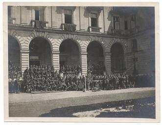 | Keywords: smithsonian institution smithsonianinstitution 1915 military uniform militaryuniform group photograph groupphotograph aef training center aeftrainingcenter bellevue france bellevuefrance servicemen europe ww1 archives of american art archivesofamericanart outdoor Description: Group of men in military uniform in front of a school where Peixotto taught. Identification on verso (handwritten): The Students and the School; Ernest Peixotto. Peixotto, Ernest, 1869-1940 Creator/Photographer: Unidentified photographer Medium: Black and white photographic print Dimensions: 17 cm x 22 cm Date: c. 1915 Persistent URL: www.aaa.si.edu/collections/images/detail/ernest-peixotto-... Repository: Archives of American Art Collection: Charles Scribner's Sons Art Reference Department Records, c. 1865-1957 Accession number: aaa_charscrs_4325 Description: Group of men in military uniform in front of a school where Peixotto taught. Identification on verso (handwritten): The Students and the School; Ernest Peixotto. Peixotto, Ernest, 1869-1940 Creator/Photographer: Unidentified photographer Medium: Black and white photographic print Dimensions: 17 cm x 22 cm Date: c. 1915 Persistent URL: www.aaa.si.edu/collections/images/detail/ernest-peixotto-... Repository: Archives of American Art Collection: Charles Scribner's Sons Art Reference Department Records, c. 1865-1957 Accession number: aaa_charscrs_4325 |