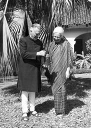 | Keywords: mennonite board of missions mennoniteboardofmissions mennonite mennonites india dhamtari indian traditional dress traditionaldress ernest miller ernestmiller ruth miller ruthmiller palm tree palmtree blackandwhite monochrome outdoor black and white Caption: This is a picture of Bro. and Sister Ernest Miller taken in Indian dress. It was taken by a palm tree they planted 30 years ago. The Millers have been in Dhamtari for seven months directing a self study made by the staff of our Christian Higher Secondary School. Bro. Miller is now bringing the rep report of the study home for the presentation to the Overseas Committee of the Missions Board. The Millers intend to return to India after a short furlough. Citation: Mennonite Board of Missions Photographs, 1898-1967. IV-10-007.2 Box 4 Folder 7. Mennonite Church USA Archives - Goshen. Goshen, Indiana. Caption: This is a picture of Bro. and Sister Ernest Miller taken in Indian dress. It was taken by a palm tree they planted 30 years ago. The Millers have been in Dhamtari for seven months directing a self study made by the staff of our Christian Higher Secondary School. Bro. Miller is now bringing the rep report of the study home for the presentation to the Overseas Committee of the Missions Board. The Millers intend to return to India after a short furlough. Citation: Mennonite Board of Missions Photographs, 1898-1967. IV-10-007.2 Box 4 Folder 7. Mennonite Church USA Archives - Goshen. Goshen, Indiana. |