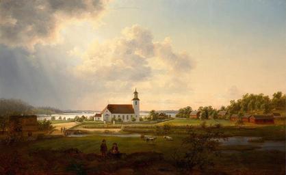 | Keywords: Ernfried Wahlqvist - Landskapsvy med kyrka vid vatttendrag.jpg Artwork title Landscape with a church by a river Landskapsvy med kyrka vid vatttendrag creator Ernfried Wahlqvist 1863 oil canvas cm 51 82 www uppsalaauktion se Public domain Other versions PD-old-100 Ernfried Wahlqvist 1863 paintings Paintings of churches Churches in Sweden |