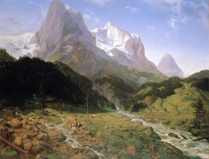 | Keywords: Ernst Ferdinand Oehme - Das Wetterhorn (1829).jpg Artwork Creator Ernst Ferdinand Oehme 1829 oil on canvas cm 141 5 184 5 Institution Alte Nationalgalerie 02532433 object history 1925 Ankauf aus ehemals Königlich Sächsischem Besitz Haus Wettin credit line ~ lower left monogram / date accession number A II 443 http //gallerix ru/storeroom/333541/N/5812/ Gallerix ru PD-old-100-1923 DEFAULTSORT Oehme Ernst Ferdinand; Wetterhorn 1829; Alte Nationalgalerie Ernst Ferdinand Oehme Paintings in the Alte Nationalgalerie Historical images of Wetterhorn Paintings of the Bernese Alps 19th-century mountain paintings 1820s landscape paintings |