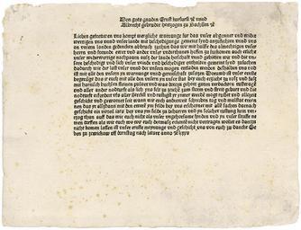 | Keywords: Ernst und Albrecht von Sachsen Ausschreibung 1485.jpg Ernst von Sachen und Albrecht von Sachsen Ausschreibung die Vorbereitung zu einem Kriegszug betreffend Formular für Städte Einblattdruck 1 S Zwickau 17 III 1485 Gedruckt Leipzig Conrad Kachelofen 1485 GW 9387 http //www bassenge com/ Galerie Bassenge 1485 Printer Conrad Kachelofen PD-old-100 Images from Galerie Bassenge 1485 documents Incunabula Ernest Elector of Saxony Albert III Duke of Saxony Konrad Kachelofen | ||||