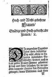 Keywords: Eröffnetes Cabinet Deß Belehrten Frauen-Zimmers p 004.jpg p_003 p_005