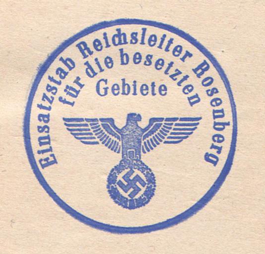Keywords: ERR Seal.jpg uk Печатка Einsatzstab Reichsleiter Rosenberg яка вико истовувалась з 1941 по 1945 ік щоб відзначити документи вилучені його спів обітниками н https //en wikipedia org/wiki/File ERR_Seal jpg н other versions cc-zero Stamps