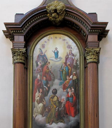 | Keywords: Erstein StMartin 67.JPG PM67001224 IM67000338 2014-08-06 own © Ralph Hammann - Wikimedia Commons cc-by-sa-4 0 PD-old-100 Taken with Canon PowerShot SX20 IS Photographs of Erstein by Ralph Hammann Interior of Église Saint-Martin d'Erstein Objets monuments historiques in Bas-Rhin church paintings Objets monuments historiques in Bas-Rhin altars Objets monuments historiques in Bas-Rhin altar pieces Objets monuments historiques in Erstein altars Neoclassical altars in Alsace Altars of Fourteen Holy Helpers 14 19th-century altars in Alsace 1804 works in Alsace 1804 altars in France 19th-century church paintings in Alsace 1878 works in Alsace 1878 paintings in France Fourteen Holy Helpers Caroline Sorg |