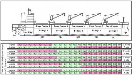 | Keywords: EscalaAsiento.PNG ES Escalas de asiento EN Trimming scale Own 2007-08 Claudio Elias Escala de asiento para un buque NN variación del calado en proa y popa para embarque de 100 toneladas Números negativos indican disminución de calado números positivos aumento Naval architecture |