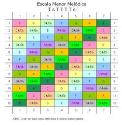 Keywords: EscalaMenorMelodica.png en All melodic minor scales Pt Todas as escalas musicais da chamada escala menor melódica own Jimmycw74 2010-05-27 Musical scales in C Melodic minor musical scales Music diagrams